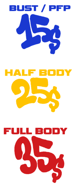 ✦ RULES ✦ABSOLUTELY NO NSFW, NO HATE ART, OVER DESIGNED/DETAILED CHARACTERS, MUST BE A PREEXSISTING CHARACTER OR OC, 2 CHANGES TO INITIAL SKETCH, ADDITIONAL 15$ FOR ANY EXTRA CHARACTERS